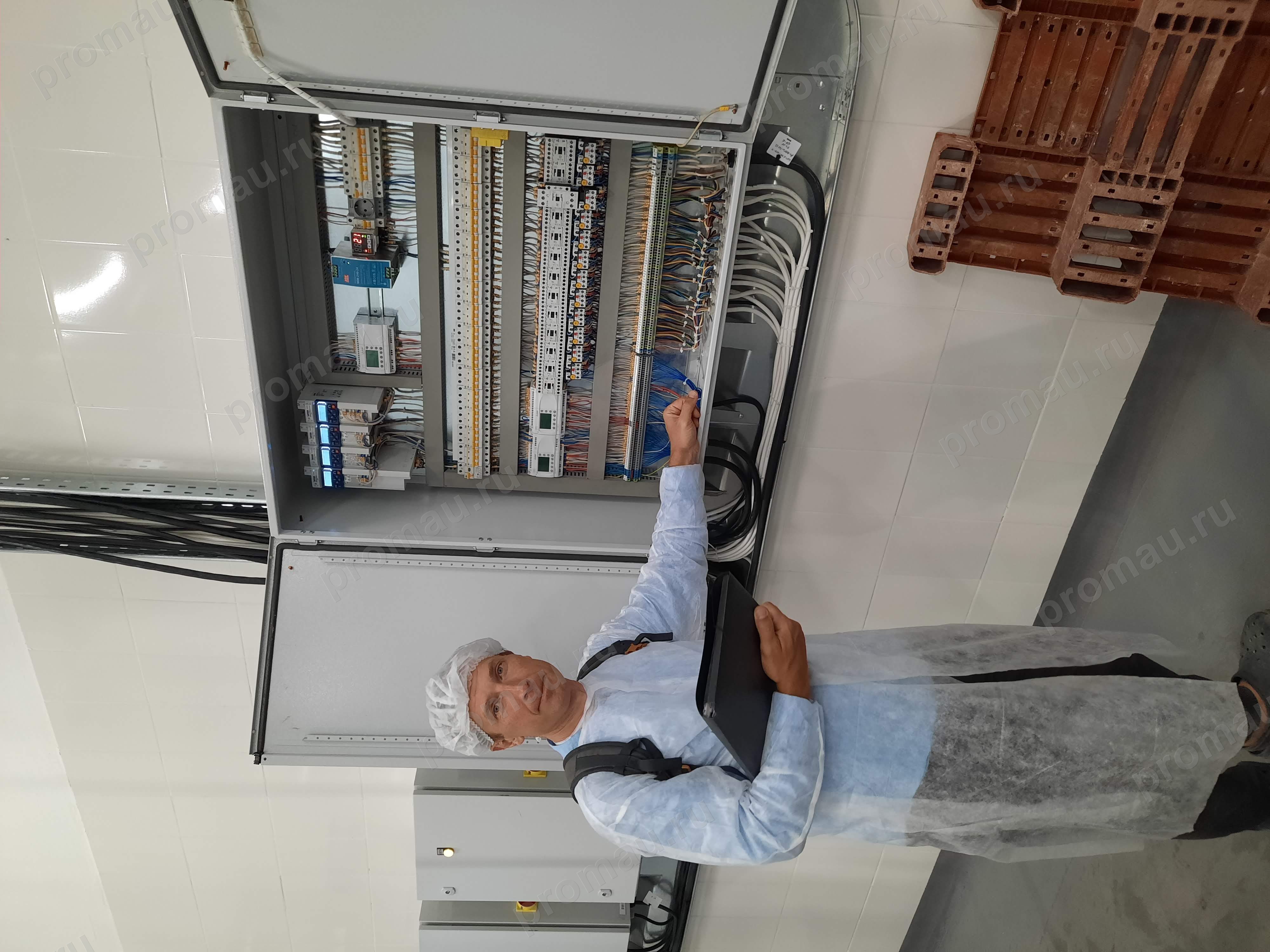 Выполнен монтаж кабеленесущих конструкций и слаботочных систем, установка и расключение шкафов управления технологическими линиями, монтаж элементов пневматического управления оборудованием.